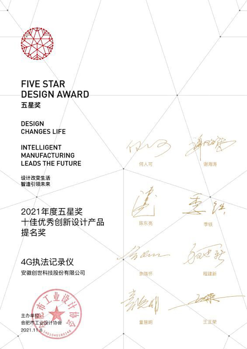據(jù)了解,本屆五星獎十佳工業(yè)設(shè)計大賽(以下簡稱五星獎)以“設(shè)計鏈動新未來 創(chuàng)新引領(lǐng)新時代”為主題,吸引了國內(nèi)數(shù)百家企業(yè)和設(shè)計師參評。此次,創(chuàng)世科技智眸系列4G執(zhí)法記錄儀能在眾多參賽項目中脫穎而出,充分彰顯了創(chuàng)世科技在工業(yè)設(shè)計領(lǐng)域的強勁實力和潛力,為實現(xiàn)設(shè)計成果產(chǎn)業(yè)化,促進產(chǎn)業(yè)鏈水平現(xiàn)代化、價值鏈檔次高端化做出了重要貢獻。